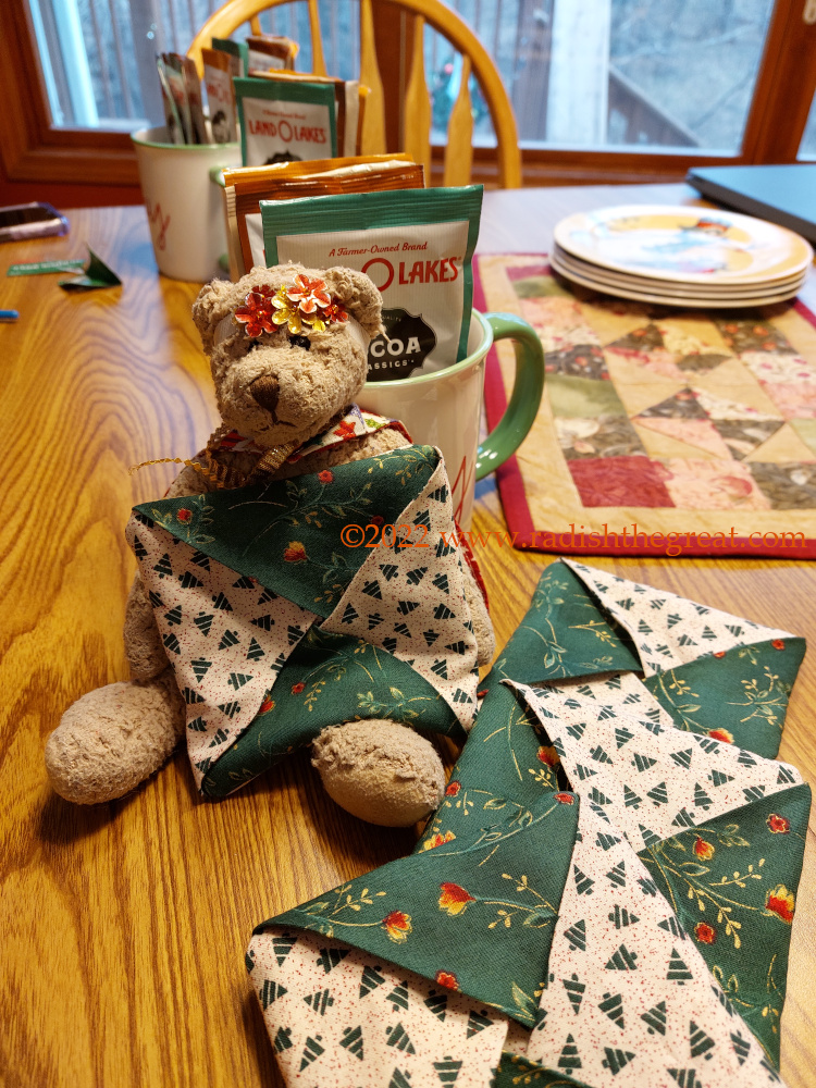 This is the second time I have made these flippy thingies for her with Christmas fabric; I made a set in 2017 after we saw some at a local quilt shop. As that was a few beers ago, I followed this video from YouTube.