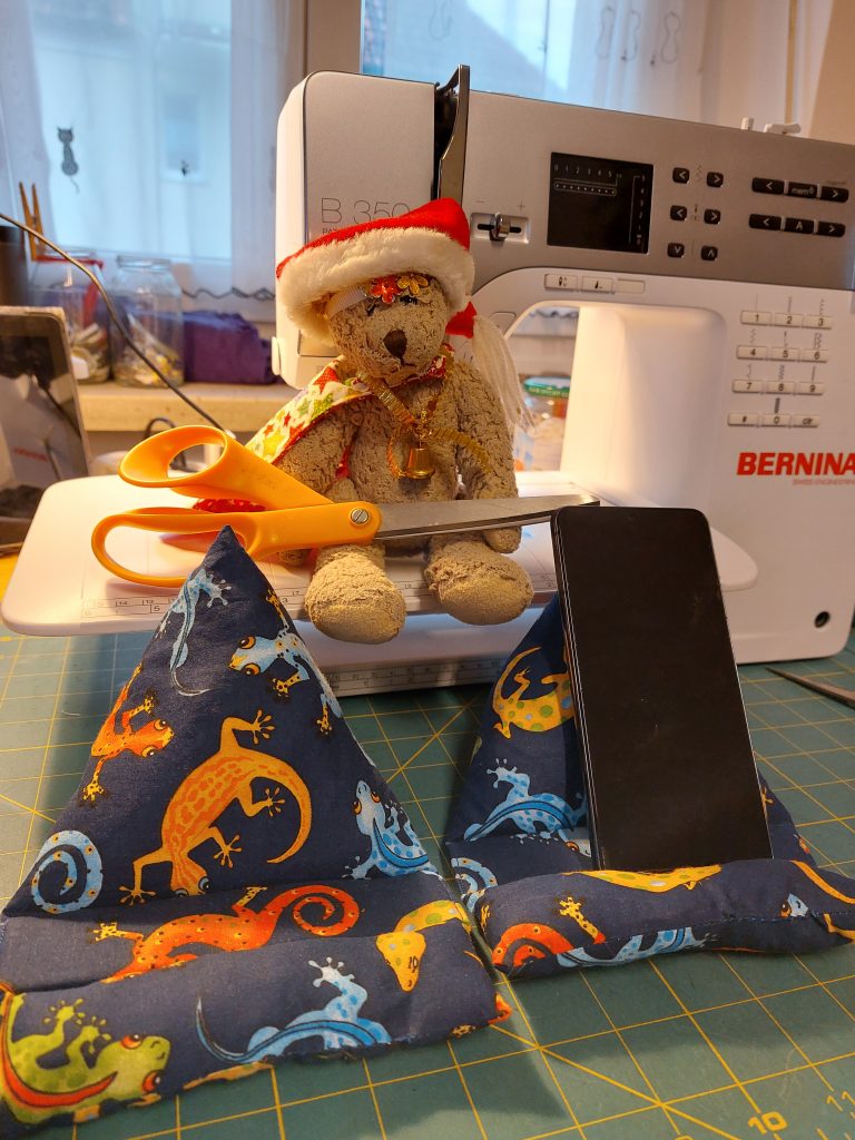 Our Beer Advent Calendar last year contained beers from young micro- and nanobreweries from the Niederrhein region. Each day we propped a phone up against the salt and pepper shakers to watch a video from the brewers while we sipped…and repropped…and repropped…. Eventually I gave up and made two bean bags, from this random tutorial, one for the kitchen table and one for the sewing table.