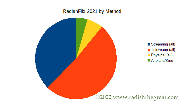 Are we getting sufficient value from the 18€/mo we pay the German TV tax (ÖRR)? From a movie standpoint, not as much as from our streaming subscriptions. (Mr Radish watches live sports in the ÖRR every week, so it’s a rhetorical question; our household uses the ÖRR.)