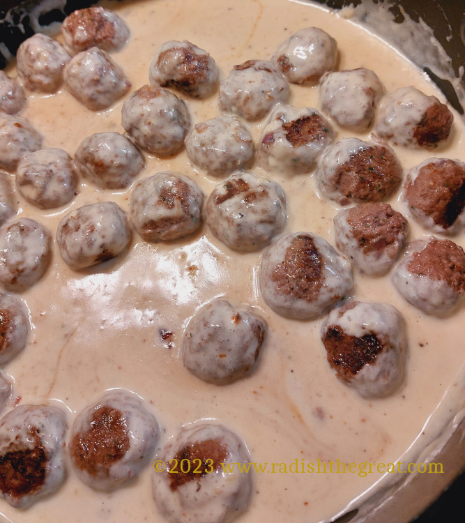 I selected a German recipe, as I do not read Swedish. Due to supply chain disruptions, I was unable to obtain Breen and substituted ground beef. A pork-beef mixture may work better; the beef balls were a bit dry.