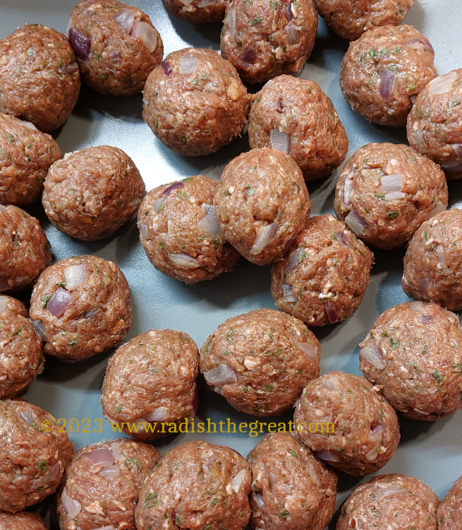 Then one day, I impulse-purchased some Lily Rose potatoes at the market, asked Mr Radish what he thought should go with mashed potatoes, and heard “Swedish meatballs!” After wondering briefly what I did to deserve this, I decided to view the request as a challenge. A well-rounded (heh) meatball enthusiast needs a Swedish in her repertoire.