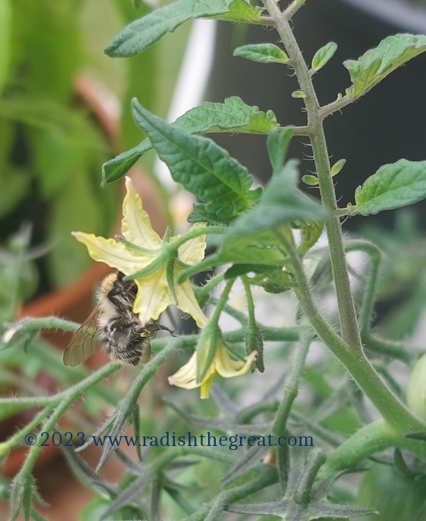 Yeah, baby! Get in there and pollinate that tomato!