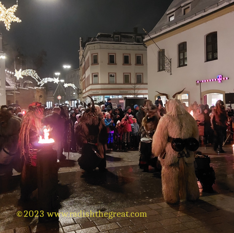 The Frisinga-Fratzen terrifying and delighting Freisingers with their dark dancing and drumming.
