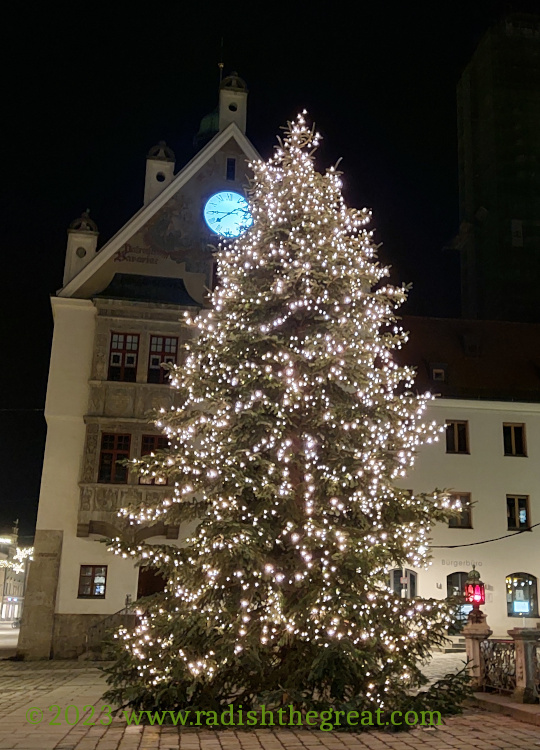 Last minuteFresh Lebkuchenplätzchen, with chocolate and nuts. December 24, 2023There was still some snow left on Christmas!!! December 25, 2023Krippe set in Freising (you see the Dom on the hill), in an empty storefront. December 25, 2023Second Christmas. The Third Worst Human in the World tortures a sweet innocent elderly cat with a festive elf collar… December 26, 2023…while dining lavishly on roast duck. December 26, 2023Sidewalk. December 28, 2023My picture-taking is fine, it is the Rathaus that is wrong. December 29, 2023