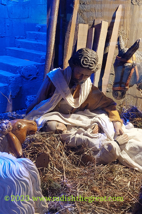 The building was closed last week when I tried to drop in. This week: probably the most realistic Mary you will ever see, exhausted after her labor. I like to imagine Herr Triller had some input from his mother and/or wife on this scene. December 28, 2023
