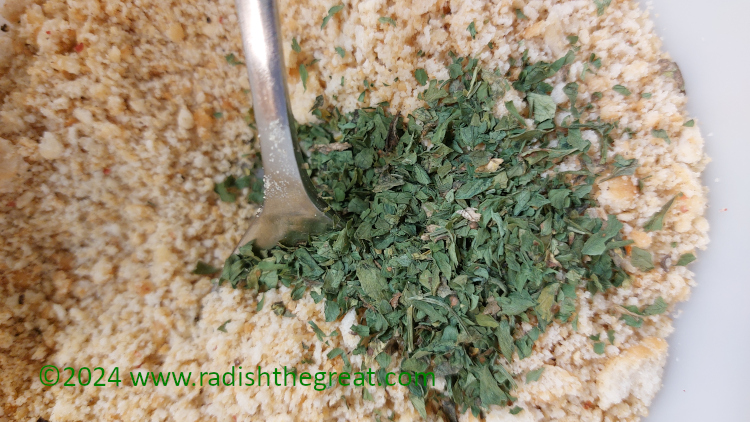 Then I crushed them down further. The finer the crumb, the finer the meatballs. (I just made that up.)