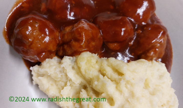 If you’re looking for health food, please go away. The latest #MeatballMonday features a saucy barbecue-flavor meatball from the 1991 Aunt Bee’s Mayberry Cookbook. You could borrow it from the Internet Archive until a bunch of publishers decided nobody should be allowed to read out-of-print books electronically. I have a Kindle version of this book that I bought ten years ago for 99 cents after the Mayberry in the Midwest Festival, which has also been cancelled. Most of the recipes feature ingredients that are not available here, but I thought I could swing this one.