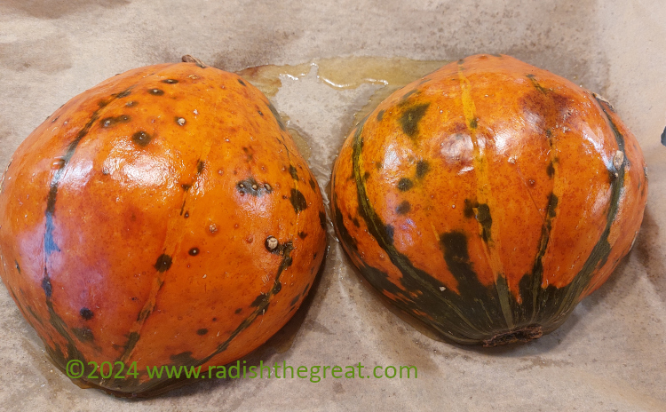 As usual, I roasted the halves cut-side down at 200°C for about 45 minutes (could have gone a few minutes longer at this size) after removing the seeds.