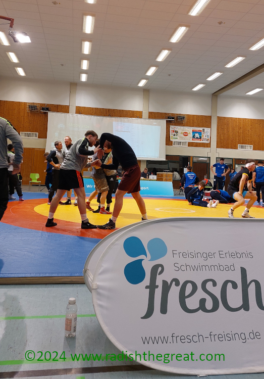 Anyway, it was an interesting glimpse into a subculture we normally have no contact with. Sports in Germany are conducted in clubs, and the wrestling clubs were every bit as intense as soccer fans, with drums and chants. The moms and grandmas were the craziest, especially after they got a couple of cocktails in them, and the ref took a lot of abuse (mad props to this guy, able to ignore all the screaming from the edge of the mat to concentrate on the match in front of him; I couldn’t do that).