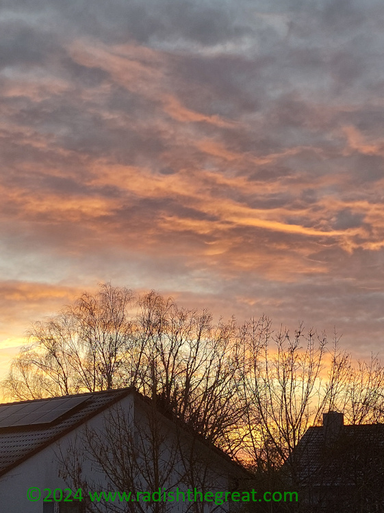Sorry for the lateness of this post. Every year we take Mr Radish’s parents down to the ass end of the Freistaat to visit their grandkids on some random but intentionally not-Christmas day (it’s a long and sad story). We got home very late, then I stayed up even later to decompress, the next day when I woke up I honest-to-God did not realize it was Sunday until I went for my afternoon walk and the traffic lights were out. “Anarchy Sunday” I call that, although it probably has a more comforting euphemism.