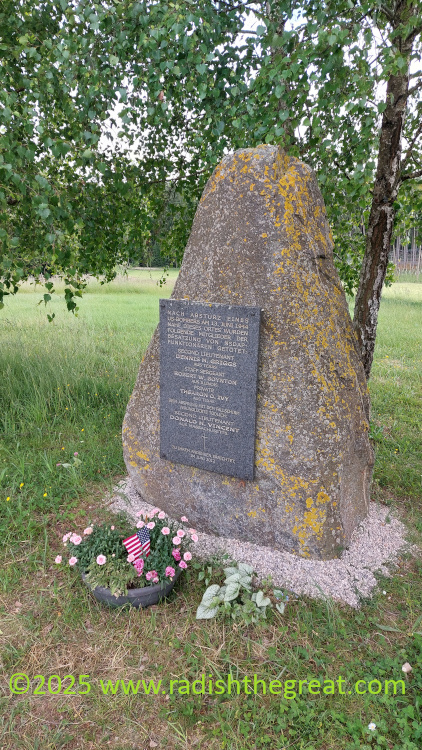 On Memorial Day, which is a normal Monday here and I always find that weird, I drove out to the middle of nowhere in the Hallertau to leave a flag at the memorial for three US Airmen murdered by Nazis in 1944 after bailing out of their bomber. You can find the whole story in the May movie post, please scroll down. It’s just off a single-lane farm track, with trees and a bench. DO NOT TRUST THE NAVIGATION SYSTEM IN MR RADISH’S CAR. It took me out onto a forest access road, but an elderly man on an antique bicycle saw me, stopped, and after hearing my accent knew exactly what I was looking for. I figure by suppertime everyone in Sillertshausen (population approximately 80) knew an Ami came out and got herself lost in the forest. Lol.