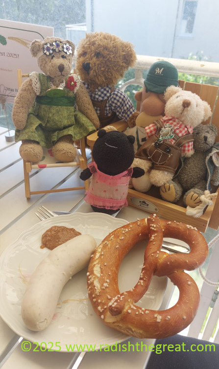 Given the actual situation, I thought it best not to go overboard at Kürbisfest. Two for baking, two for roasting as main/side dishes, two for decoration, and two for experimentation. September 14, 2025The Marienplatz, after my weekly blood draw. September 15, 2025Short afternoon trip to Feinkost Spina, where a hundred different shapes of pasta blew my mind. We brought home some of the bigger-than-our-plates pistachio mortadella and resolved to go there more often. September 16, 2025He’s getting a little crusty and stinky; he gets a lot of food on himself and I’m not often allowed to wipe and brush him. Still, he persists. 21 years together this week. September 16, 2025View from the comets on the Planetenweg in Scheyern. You start the 6.5km hike at the sun, follow it out all the way to Neptune (“You hear about Pluto? That’s messed up, right?”), and return to the Biergarten at the monastery. 🙂 September 17, 2025The reward for the hike: Homemade sausages from the monastery butcher on a bed of potato salad, topped with Kren (fresh horseradish). September 17, 2025 The annual Septemberfest, this year with alcohol-free wheat beer, but still always Weißwurst and Brezn mit süßem Senf. September 20, 2025