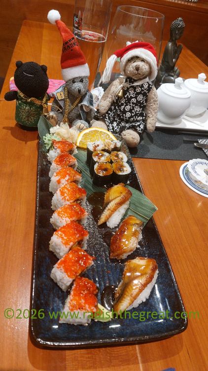 Marienplatz Monday, approximately 9 a.m. January 5, 2026Birthday sushi, the Unagi platter. Three types of eel rolls, which was too much–next time one unagi roll and another of something else. January 5, 2026Took a nice walk on Epiphany, then didn’t leave the house for the next five days because the weather was crappy. January 6, 2026Watched a lot of movies this week. January 6, 2026Did some patchwork and also undid some patchwork. Sigh. January 8, 2026Finally some nice weather on the weekend, for Stunde der Wintervögel, the annual bird-counting weekend. It’s still always the coldest weekend of the year, I don’t know why. January 11, 2026