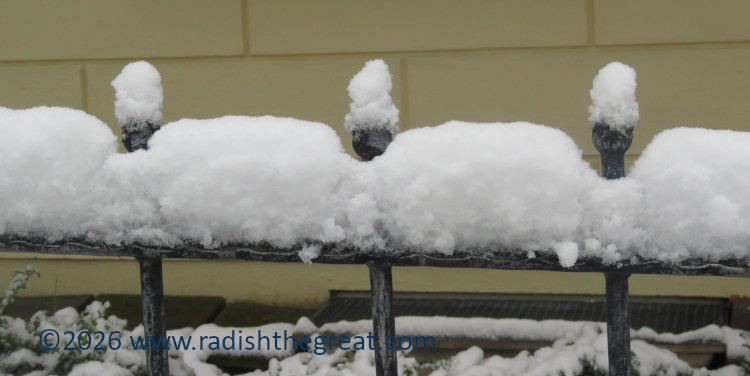 Since the snow was so wet, it held together in interesting shapes on rails, fences, and other objects.