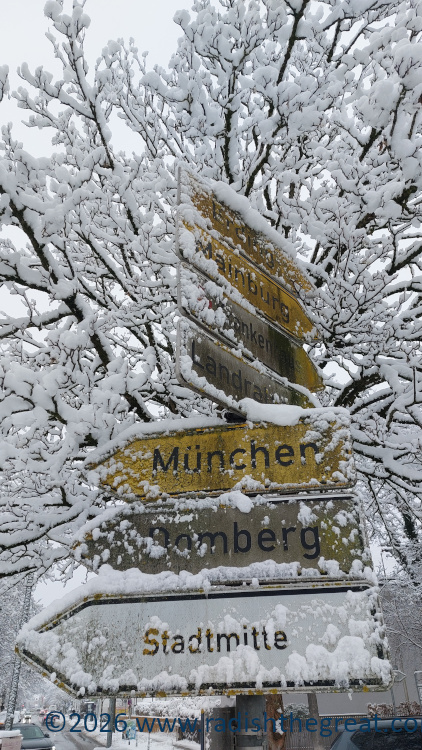 Got about six inches of wet, heavy snow overnight. A bit unusual for Freising at any time of year, but I’m Not Impressed, I’m From Iowa (plus there was that time we had 18″, it’s never going to be that good again). So I went for a morning walk, just around my neighborhood, before it all melted off.