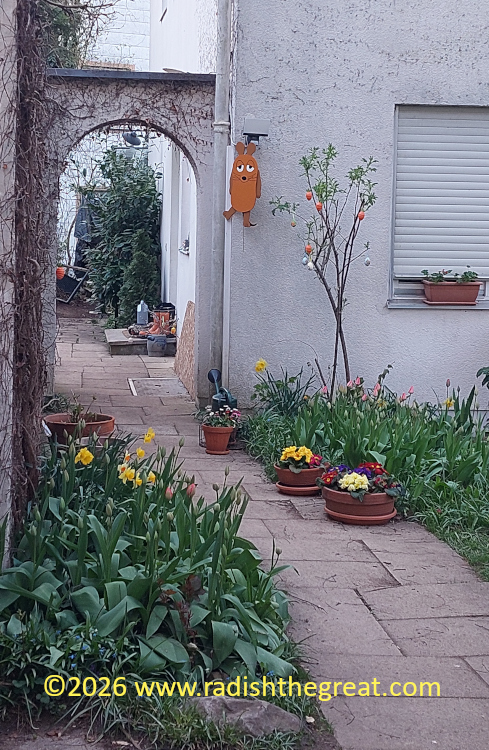 Instead of Easter at home, we took Mr Radish’s parents to a fancy restaurant in a former cloister in Bergen bei Neuberg an der Donau, where we have been before. There’s a lot going on with everyone’s health right now (prayers are appreciated) and we decided to let someone else cook for us this year. I had cream of Spargel soup, braised lamb with an incredible potato gratin, and a redonkulously fancy three-part dessert with six different fruits in the garnishes. It was meant to be memorable, and it was.